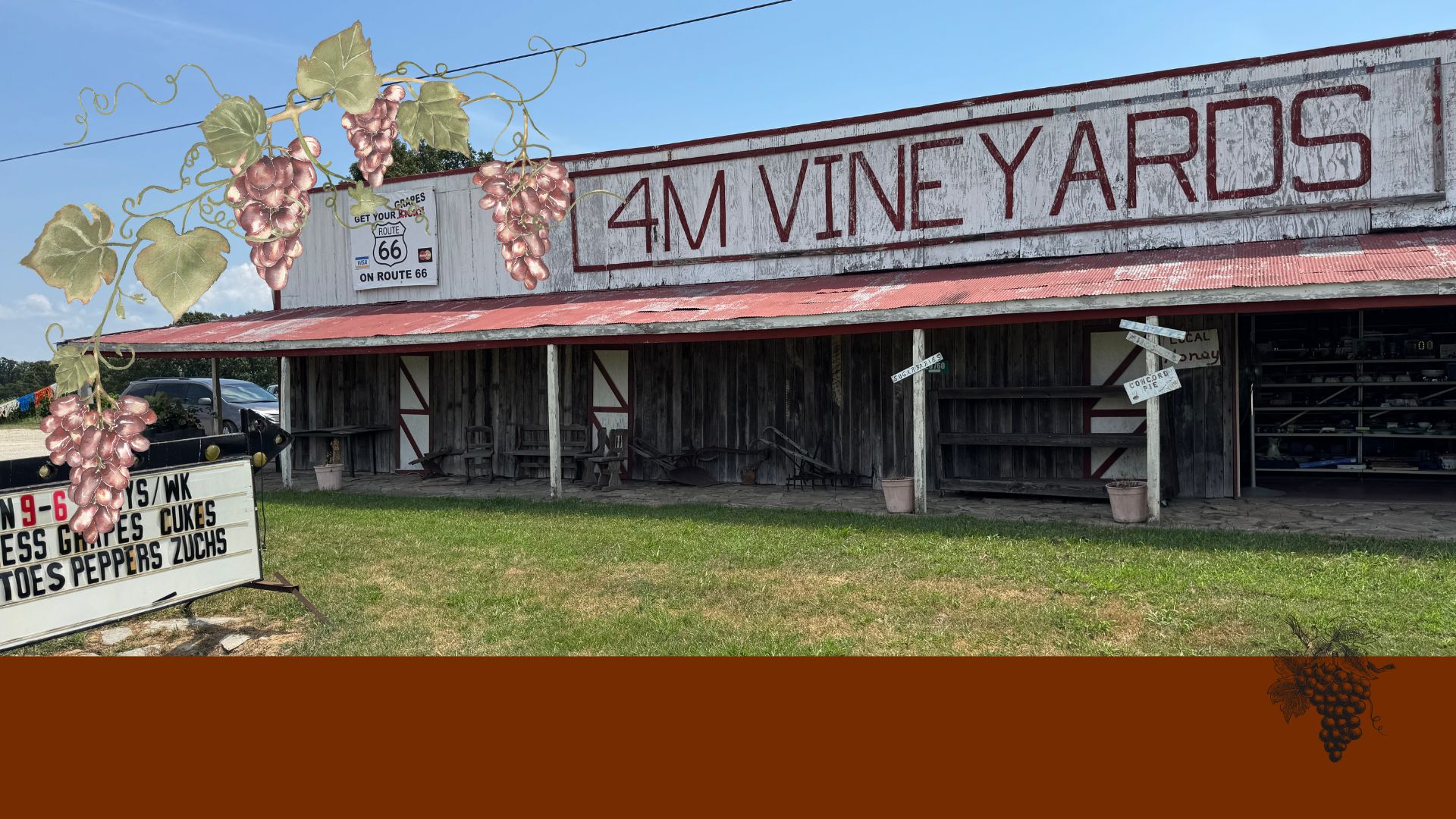 4M Vineyards began as a simple Future Farmers of America (FFA) project and has since grown into a thriving family business, proudly standing as one of the largest Concord grape vineyards in Missouri. Since its inception in 1984, 4M Vineyards has remained a family-owned and operated business, deeply rooted in tradition and committed to quality. Over the years, it has become a beloved landmark along the historic Route 66 in the St. James, MO area, attracting visitors from near and far.